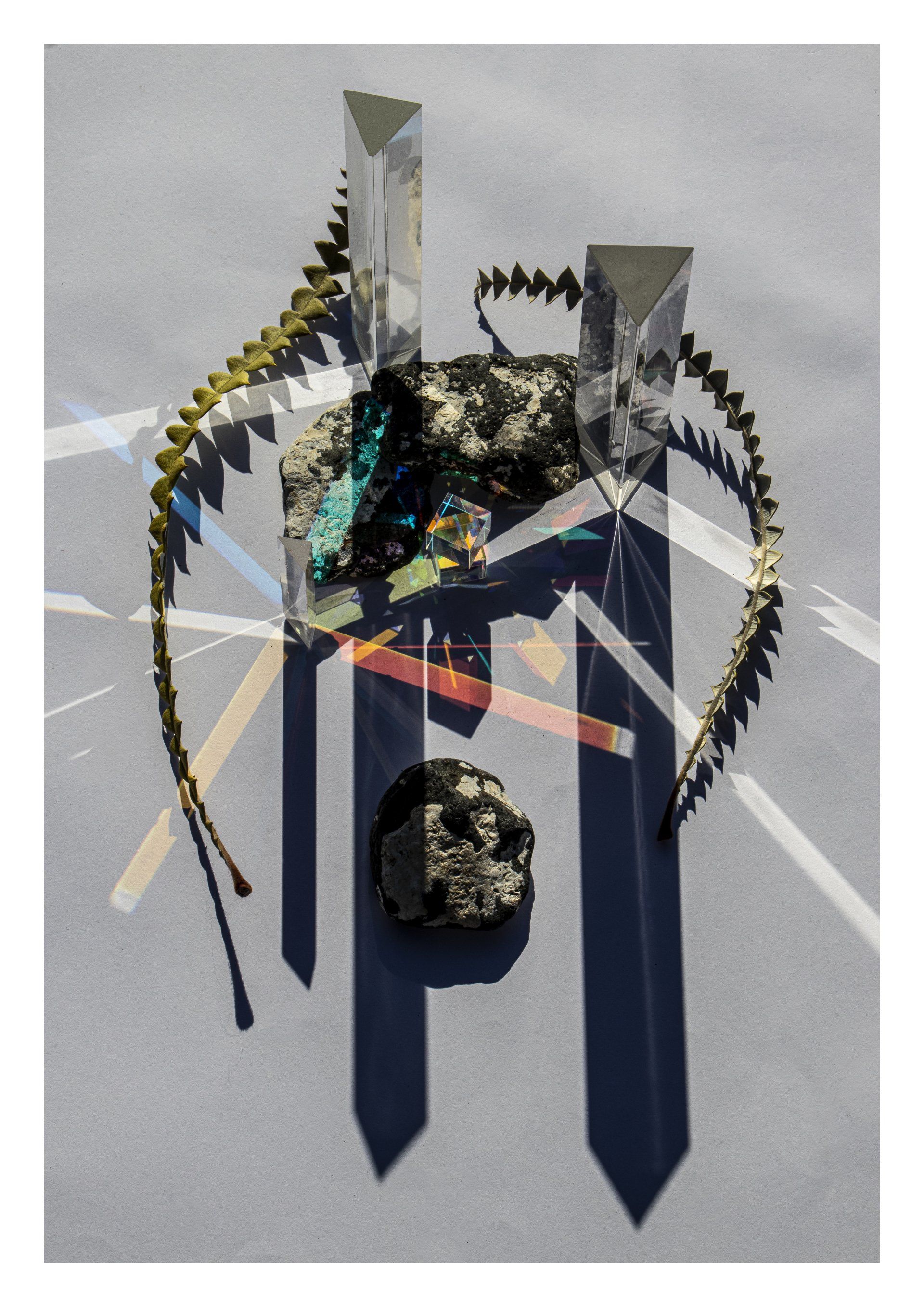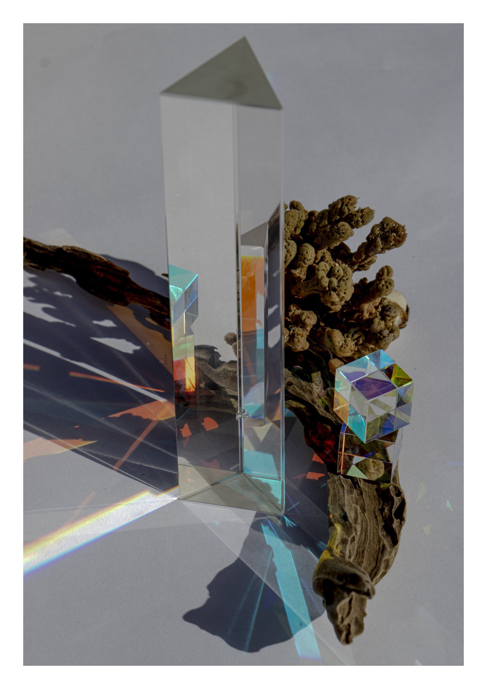 Using a variety of glass prisms, found objects, mirrors and the sun the artist has created multi-faceted light spectrum's that transmute the dark shadows and reignite life back into otherwise dead or disused objects. This is reflected in the underlying hOPE and new beginnings that are emerging across the planet under these extremely trying times.